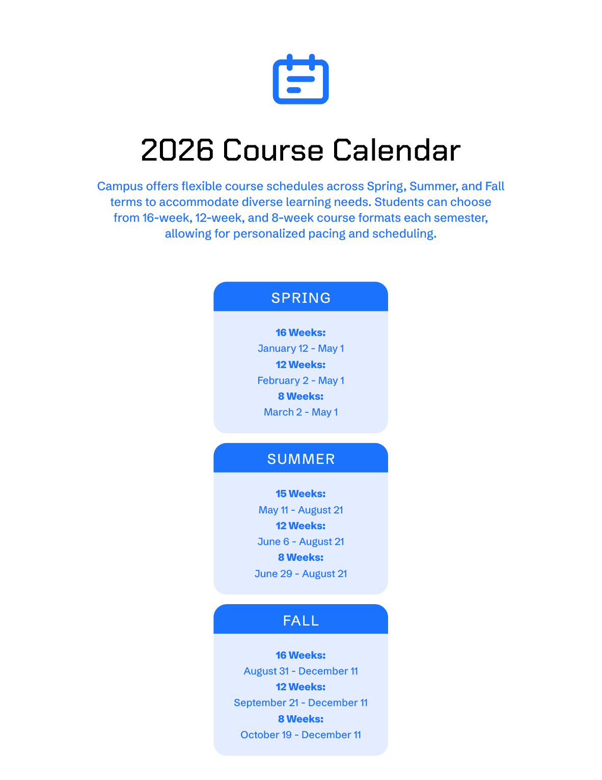 These courses are designed for flexibility of pace and schedule.